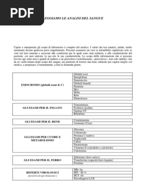 Physical Trainer: ABC… DEGLI ESAMI DEL SANGUE La mia intenzione è, fare una carrellata delle varie voci che si trovano in genere negli esami del sangue più comuni e di spiegarne il significato. Chi pratica attività fisica dovrebbe fare gli esami del sangue almeno una volta all'anno per vedere come il suo corpo sta funzionando ed eventualmente intervenire a livello medico se qualcosa ...